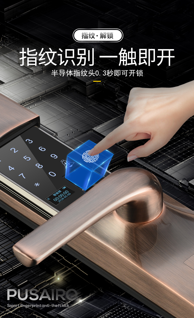 三明滑盖指纹锁家用防盗门